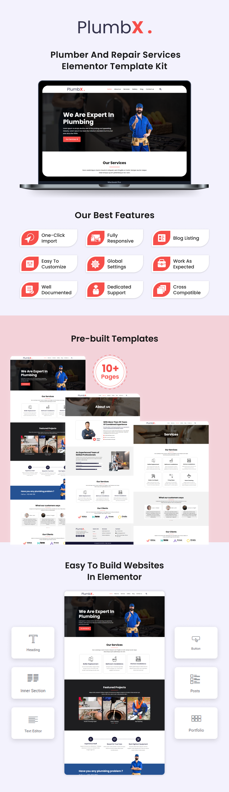 PlumbX - Plumber and Repair Services Elementor Template Kit